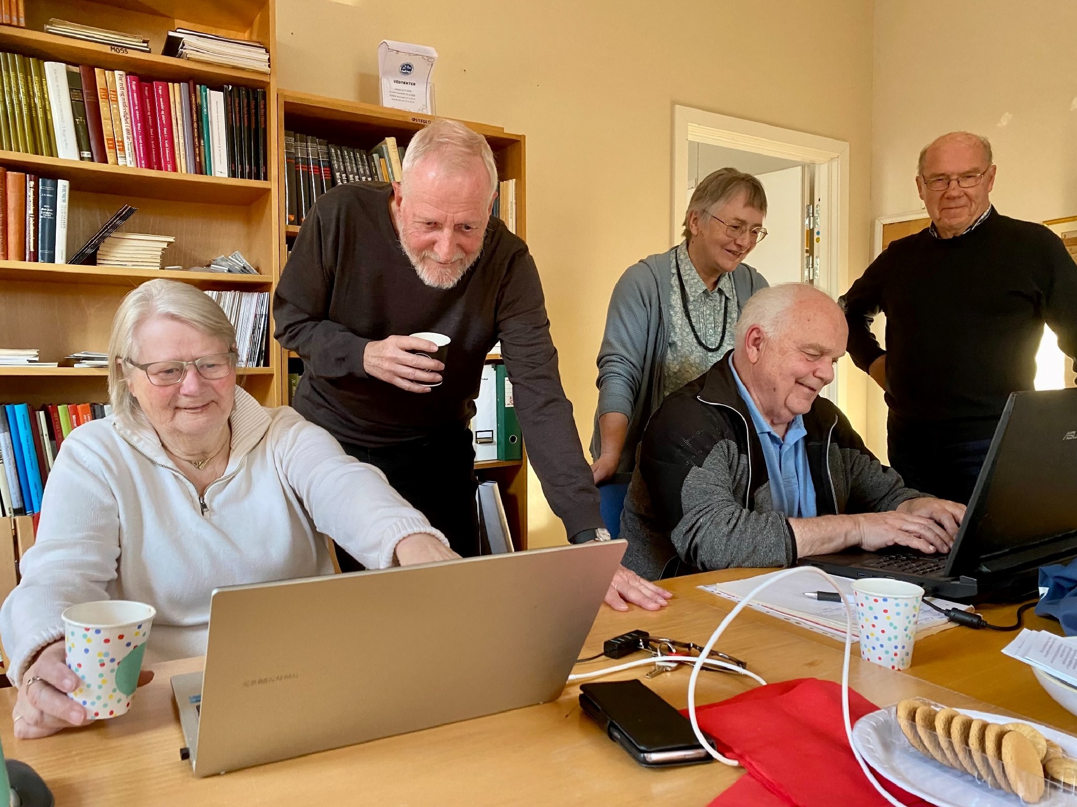Slektsforskergruppa i Moss Historielag har møter her i biblioteket første mandag hver måned kl 17-19.