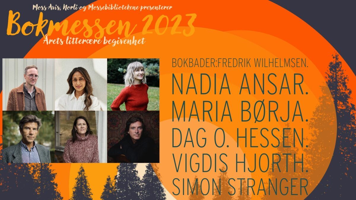 De er aktuelle med årets ferske bøker, og har alle til felles at det er glitrende bøker de har skrevet, godt mottatt av publikum og meget gode anmeldelser i media. Vi er veldig stolte av å ha et program med bøker som tematisk favner om det meste av hva livet handler om. Forfatterne bokbades av Fredrik Wilhelmsen (idéhistoriker og formidler, med doktorgrad i sosiologi.), som syr kvelden sammen til en minnerik opplevelse. Bokmessen er som vanlig et samarbeid mellom Moss Avis, Mossebibliotekene og Norli Bokhandel.